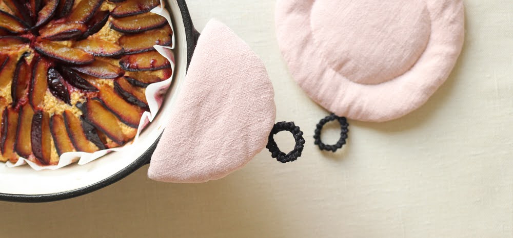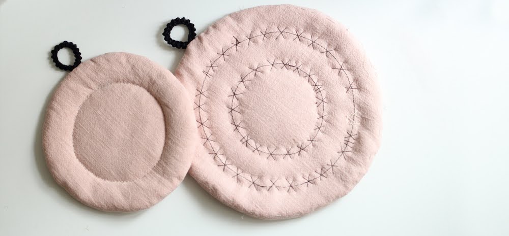 Pornind de la bucăți de materiale rămase de la proiectul anterior - Quintessence, dar și din nevoia proprie de a-mi echipa bucătăria, am început să creez niște piese textile.